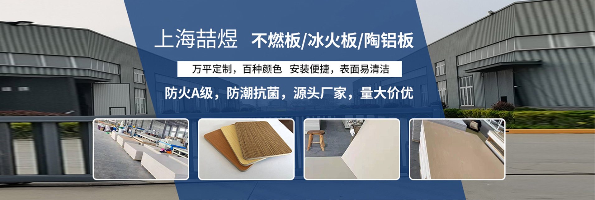 上海喆煜實業有限公司是一家專業生產玻鎂板基材以及飾面板深度加工的企業。產品包括冰火板、陶鋁吸音板、木質類吸音板、防火飾面板、醫療板、抗貝特、潔凈板、隧道防火板、快裝板、輕鋼別墅一體化快裝墻板、金屬覆膜板,鋼制復合墻板,鋼制門,鋼制隔斷及玻璃隔斷等防火系列裝飾材料。